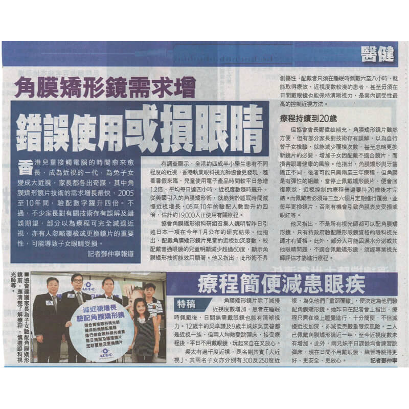 「 瞓覺減近視 - 角膜矯形術探討」新聞發布會